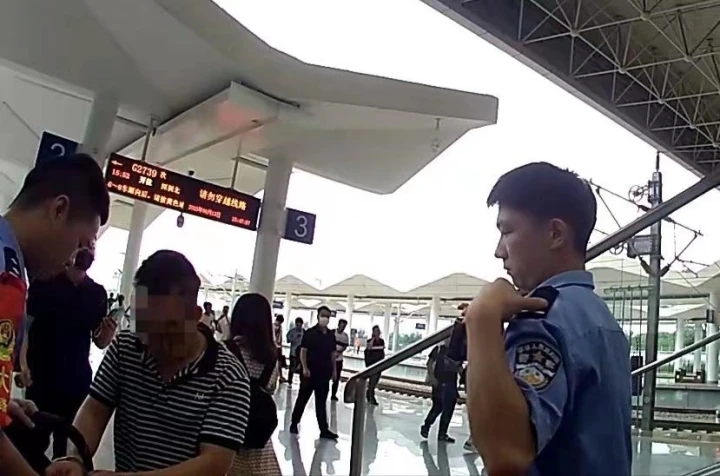 當天14時許,由于車上人多,廣東惠州鐵路公安處乘警長李澤珍為了確保列車治安穩定,防止有不法分子侵害廣大乘客的合法權益,對整列車加強防盜安全巡視。巡視到6號車廂時,他站在過道中間環視整個車廂甄別有無可疑人員,突然發現8號座位中年男子眼神慌張,有意回避扭頭假裝看窗外風景。乘警長憑職業經驗推斷“也許該人有問題”遂即對其進行身份核查。