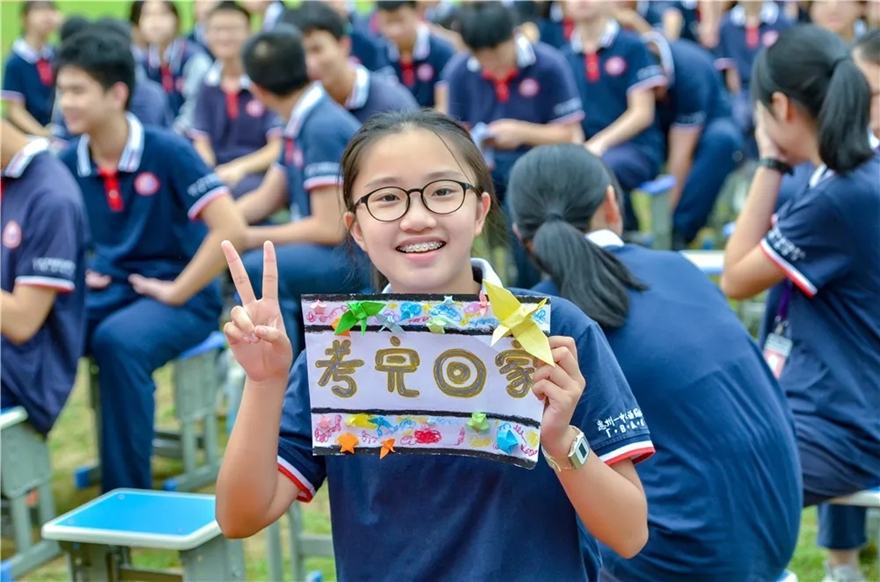 惠州一學(xué)校的學(xué)弟學(xué)妹為中考學(xué)子助威。今日惠州網(wǎng)2021年資料圖