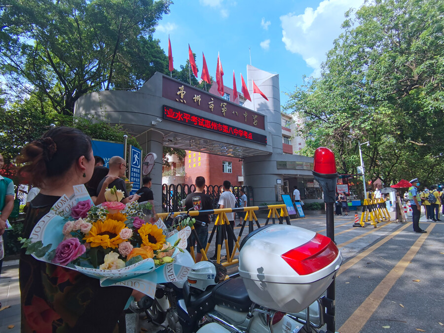 2022年6月,家長手捧鮮花等孩子出考場。今日惠州網資料圖