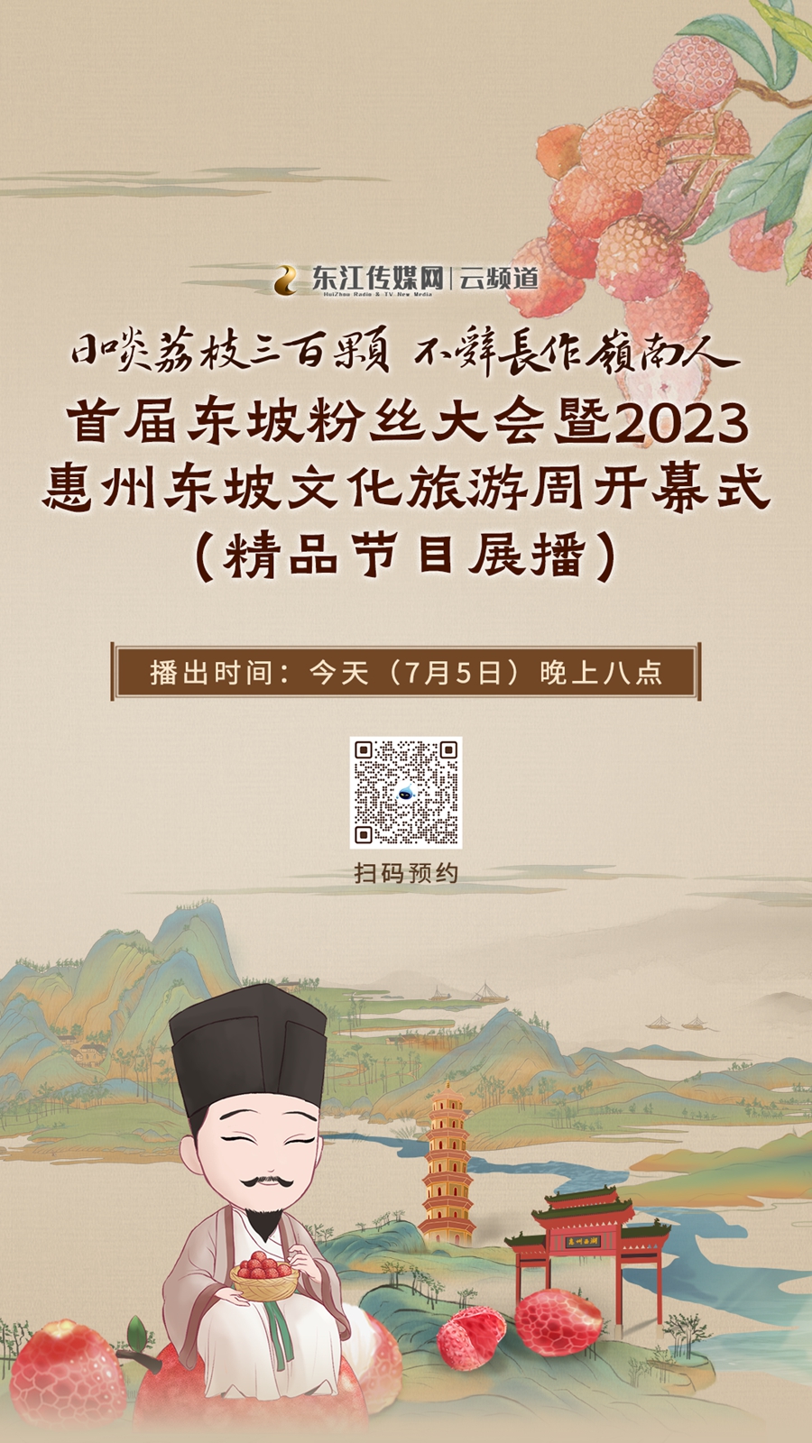 “日啖荔枝三百顆 不辭長(zhǎng)作嶺南人”首屆東坡粉絲大會(huì)暨2023惠州東坡文化旅游周開幕式以“荔枝”為媒,打造了一場(chǎng)集互動(dòng)、視聽、娛樂、觀賞為一體的東坡文化原創(chuàng)精品主題晚會(huì),帶來了一場(chǎng)東坡寓惠內(nèi)涵的沉浸式體驗(yàn),烹出了一桌嶺南東坡文化文旅IP的饕餮盛宴。