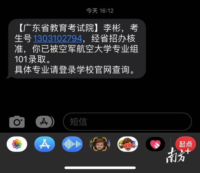 “收到錄取短信時,很激動很開心!”惠州市第一中學鄧遠航同學告訴記者,小時候他就很崇拜空軍飛行員,飛上藍天保衛祖國山河是一件很酷的事。鄧遠航因此立志成為一名飛行員,逐夢藍天。高三在學校看到空軍招飛海報時,他毫不猶豫報了名。