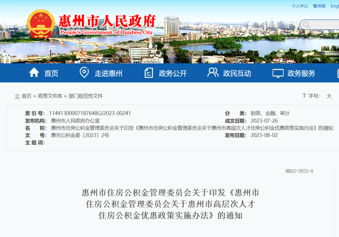 詳情請戳鏈接:惠州市住房公積金管理委員會關(guān)于印發(fā)《惠州市住房公積金管理委員會關(guān)于惠州市高層次人才住房公積金優(yōu)惠政策實施辦法》的通知
