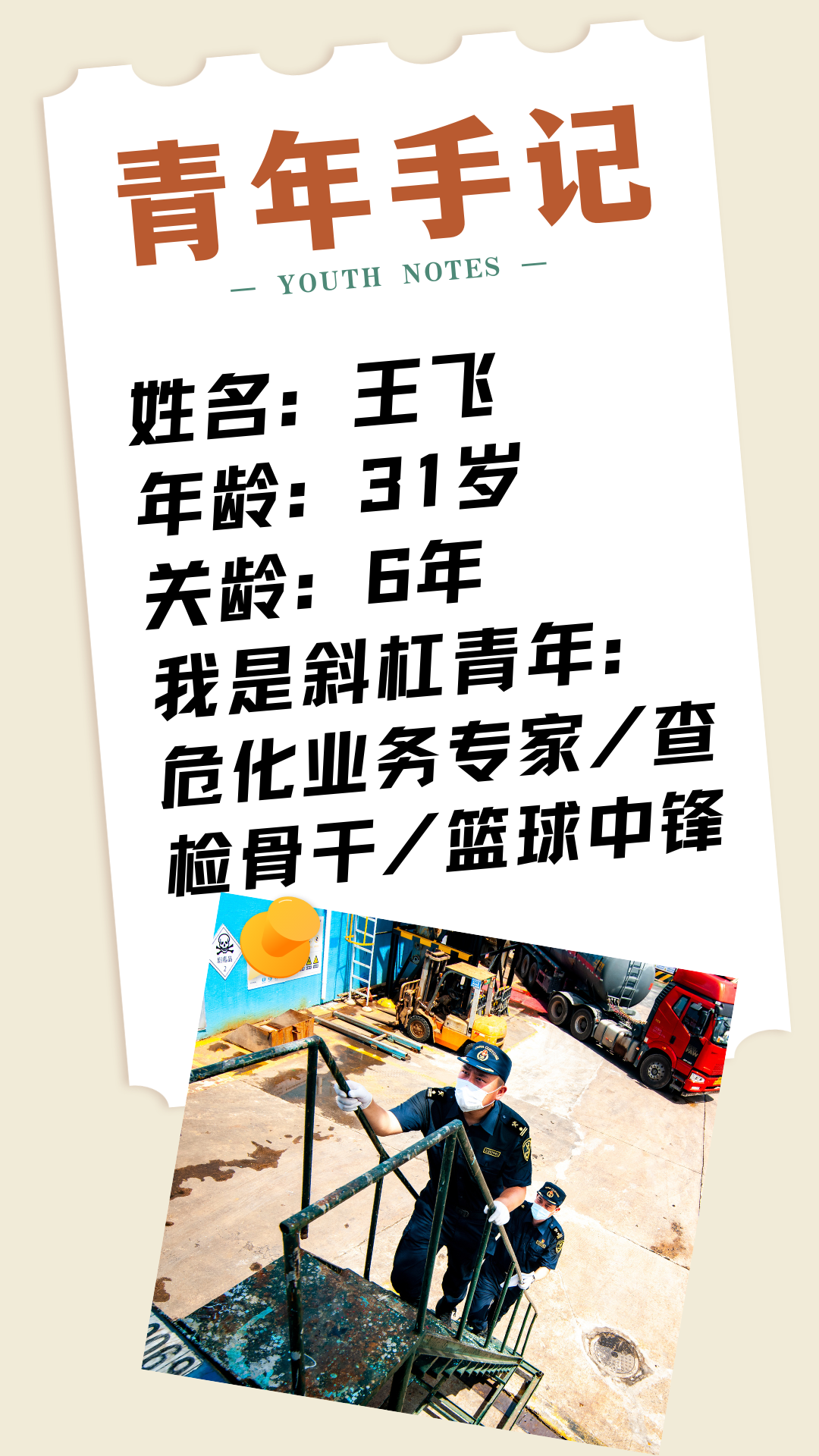我是惠州海關查檢一科王飛。2017年,在我的26歲,成為了進出口危險化學品屬地查檢的一員。在這個崗位上,我經歷了各種各樣的磨礪和考驗,也真正懂得了擔當奉獻、守職盡責的初心使命。回想6年時光,既有炎炎烈日下攀爬3米多高的罐柜,也有零下30℃冷庫中的仔細驗核;既經歷過外勤路上臺風暴雨引起的山體滑坡,也經歷過外勤車輛被追尾的驚險一刻;既有宣貫講解時的耐心解答,也有假期堅守崗位的擔當時刻……