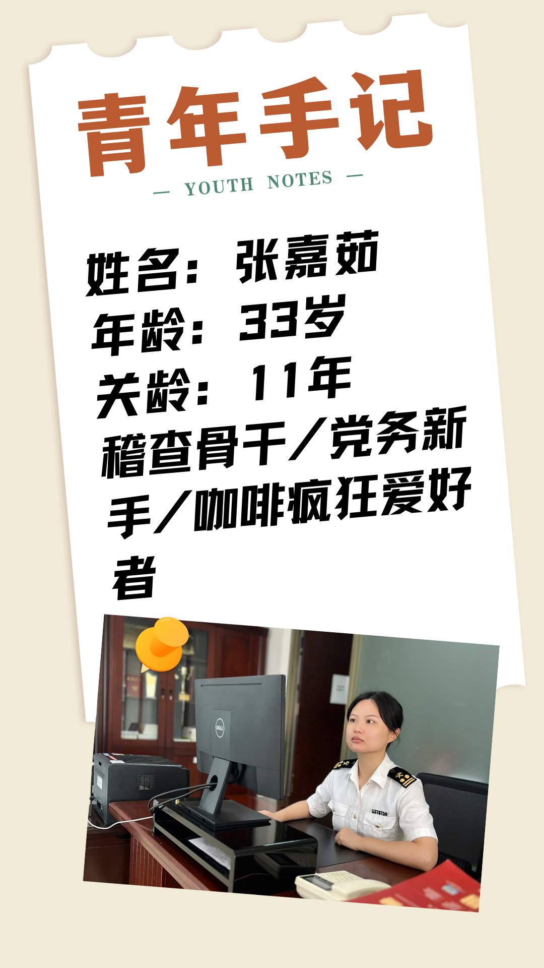 我是惠州海關稽核查二科張嘉茹。2017年底,在我的27歲,我加入了稽查的大家庭。