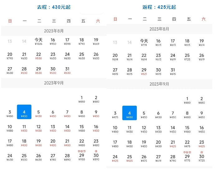 注:下述截圖時間基本在8月15日下午15:20前后,數據均來自攜程,因機票變動較快,大家購票請以實際為準!