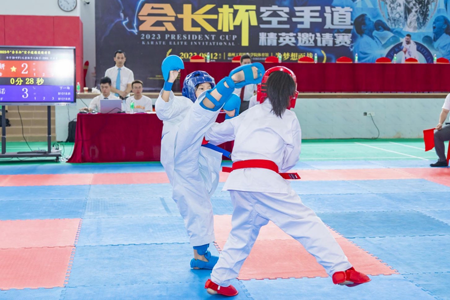 惠州日報訊 (記者譚琳)惠州市2023年“會長杯”空手道精英邀請賽日前在惠州工程職業學院體育館舉行,全市近130名運動員參加了幼兒組、兒童組、少年組、青年組和成年組的比賽。本次比賽采用世界空手道聯盟2022年最新版本比賽規則,經過1天400多場次的角逐,最終決出組手與型各組別49個級別的比賽前八名。