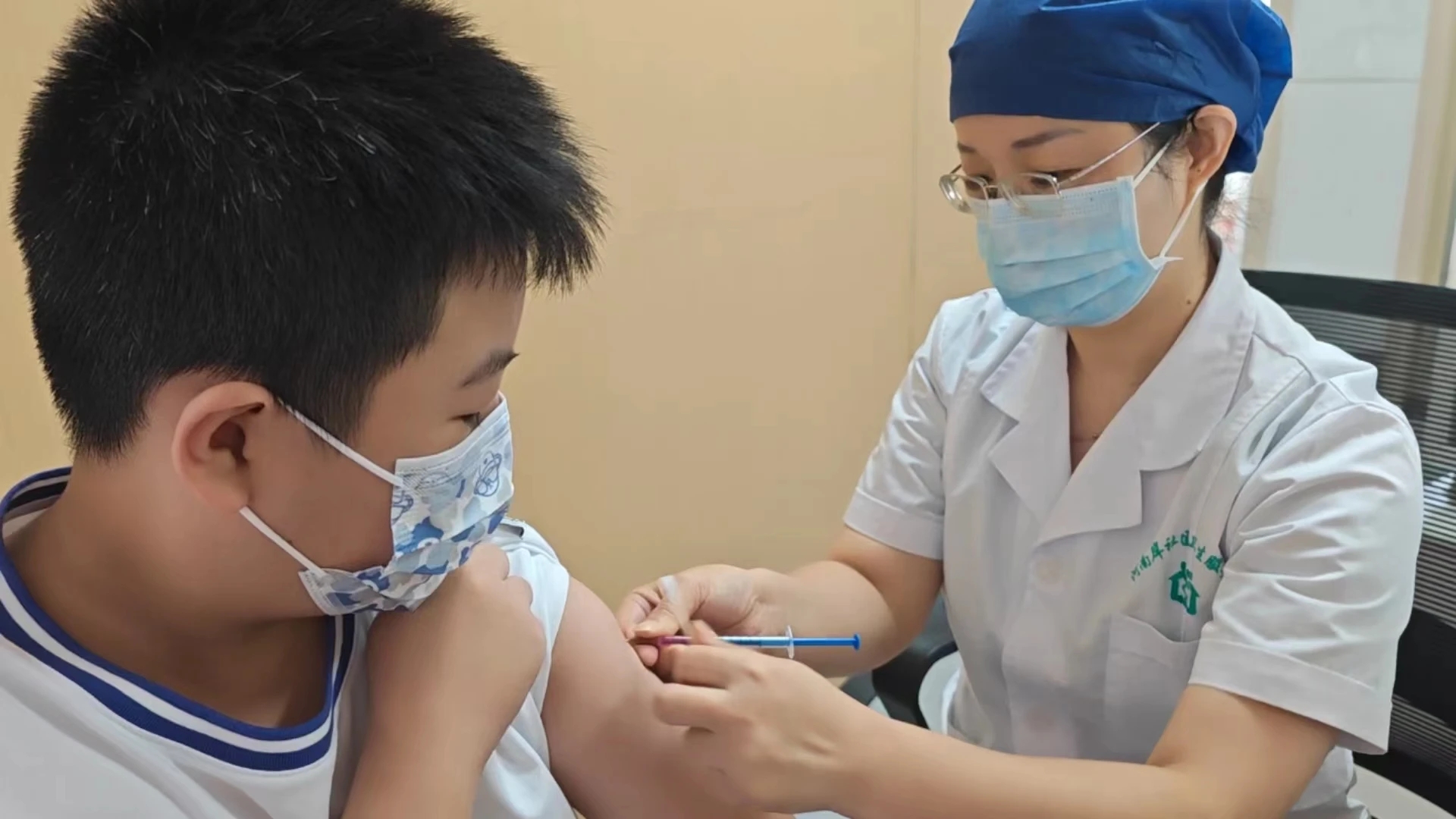 一學生在惠城區金山湖社區衛生服務中心接種疫苗。