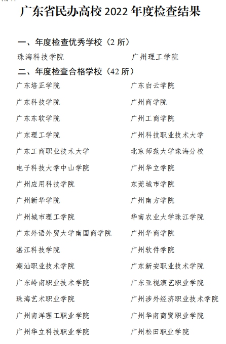 附廣東省民辦高等學校2022年度檢查結(jié)果