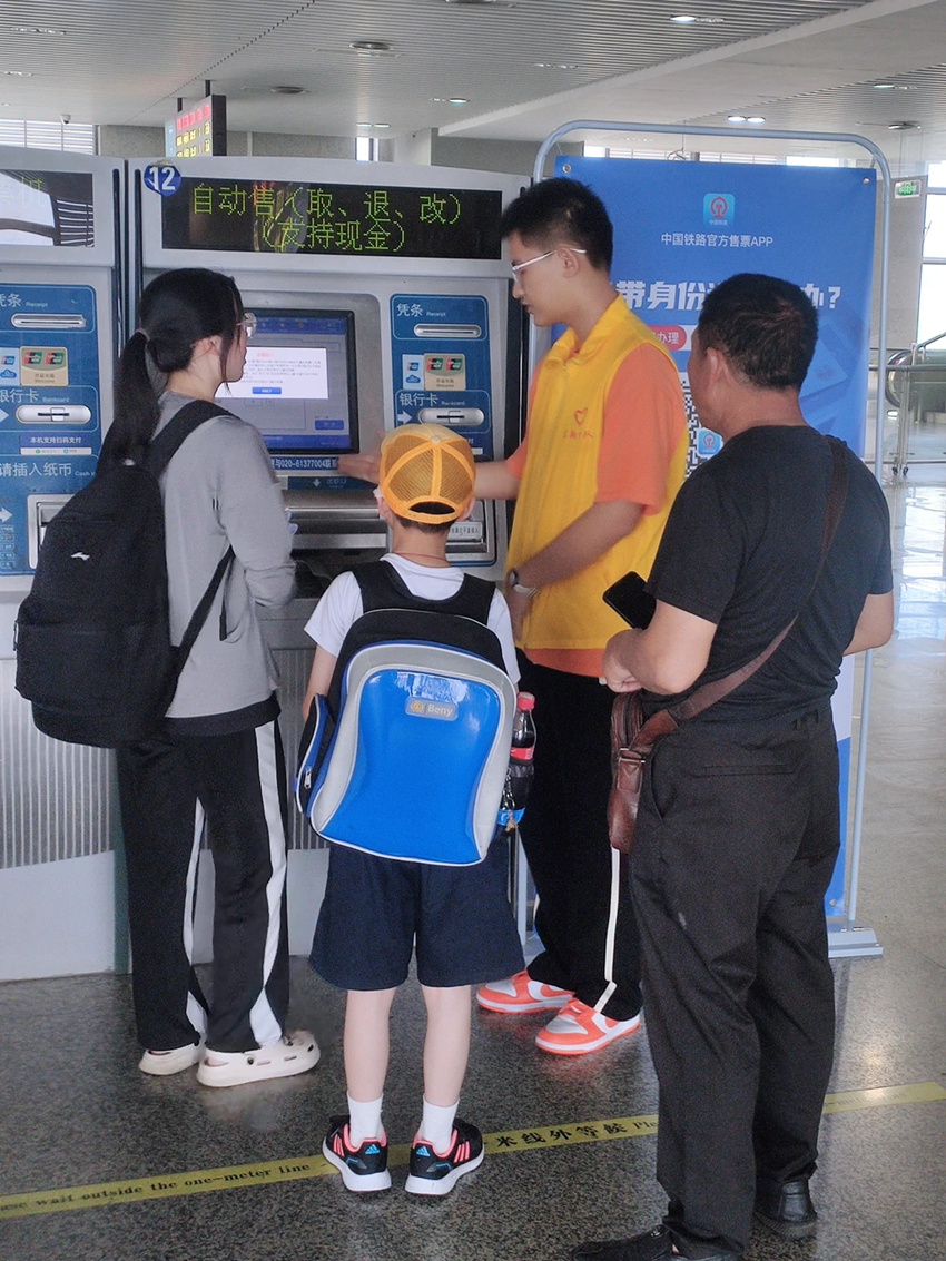暑運出行旺季,工作人員為旅客有需要的旅客提供問詢、指引等服務。