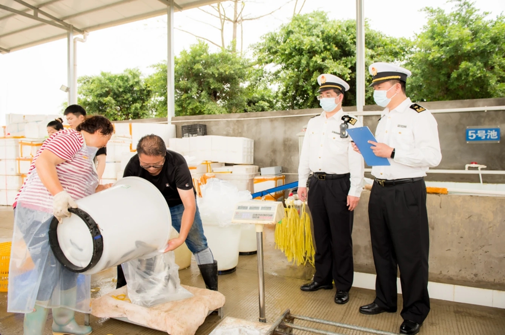 惠州海關關員對擬出口活鰻開展現場監管作業。