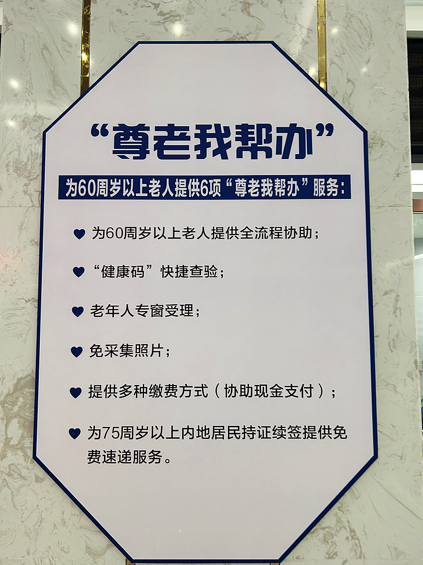 在惠州市政務服務中心三樓辦證大廳的顯眼位置懸掛著《尊老我幫辦》便民信息;輬笕襟w記者嚴東東 攝