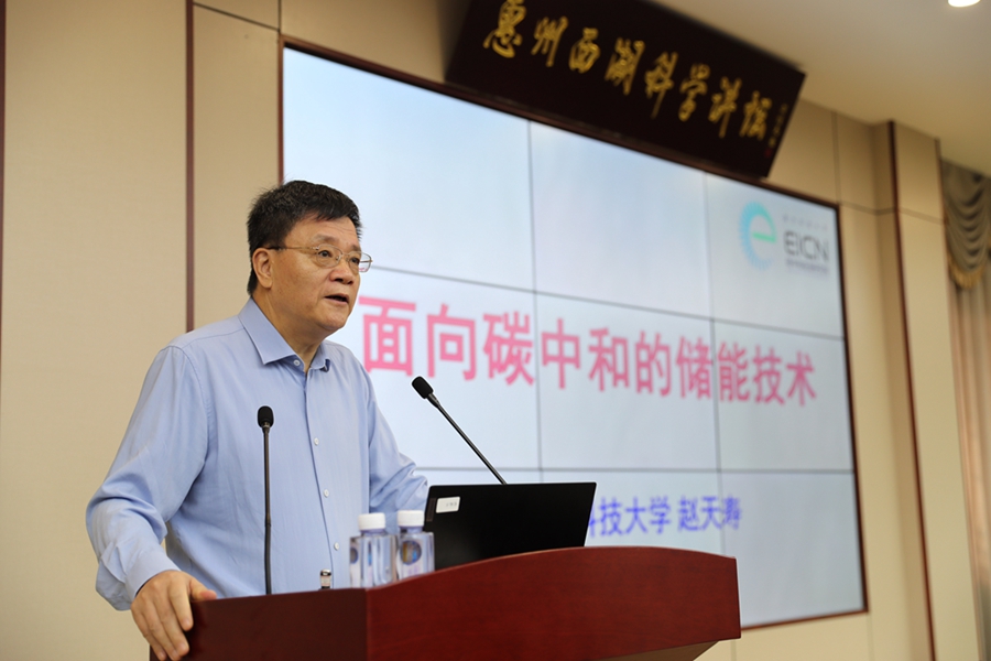 8月24日上午,惠州西湖科學講壇(第二十一講)在豐湖書院澄觀樓舉行。中國科學院院士、南方科技大學碳中和能源研究院院長趙天壽以“面向碳中和的儲能技術”為主題作專題報告,結合研究實踐,探討、講解了實現碳中和目標對儲能技術的要求,分析不同種類新型儲能技術發展現狀與面臨挑戰,闡述儲能領域技術發展方向與產業機會。他認為,目前長時儲能技術是重要發展方向。惠州在發展新型儲能產業方面具有優勢,要結合本地實際加強長時儲能技術研發力度,搶占產業制高點。