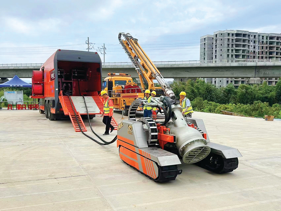 應急救援隊伍演練排水設備;葜萑請笥浾邉⒔ㄍ 特約通訊員李佳曉 攝