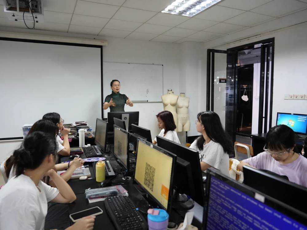 傳統的服裝專業教學方式是基于單個知識點,單一的教學方式無法適應當下市場對復合型人才的需求。為此,楊雪梅和她的團隊從市場產品流程的角度出發,以省級重點項目“服裝三維數字智能技術開發中心”建設為抓手,于2018年成立服裝數字藝術創意實踐工作坊。這支由“企業導師+雙師導師”構成的省級教學團隊,在專業教學上進行大刀闊斧的改革。在教學手段上,研究運用VR、AR、3D仿真等數字技術,通過虛擬仿真技術與教學環節緊密結合的教學方法,實現了教材立體化、知識動態化和教學資源共享,形成以體驗為特征的教學方式,填補了國內相關專業教學空白。