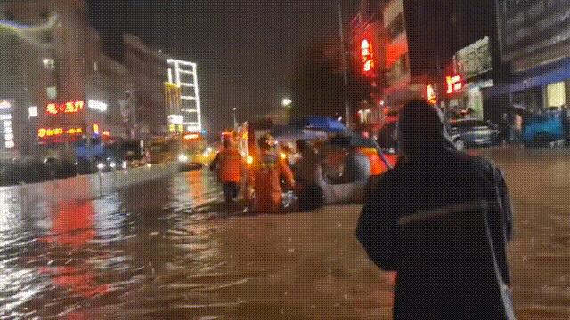 經了解,因兩名老人居住位置較低積水嚴重,最深處已達腰身,消防救援人員乘坐橡皮艇沿著道路摸索前進,深入被困老人居住位置進行搜尋。