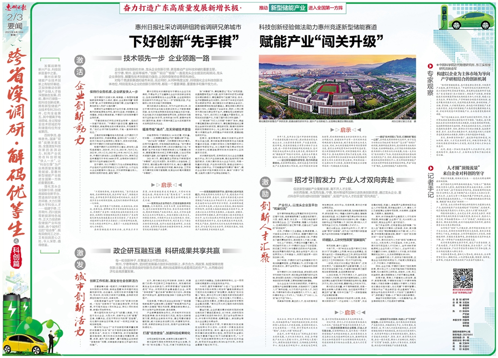 今日《惠州日報》推出“跨省深調(diào)研 解碼優(yōu)等生”系列深度報道之科創(chuàng)篇。