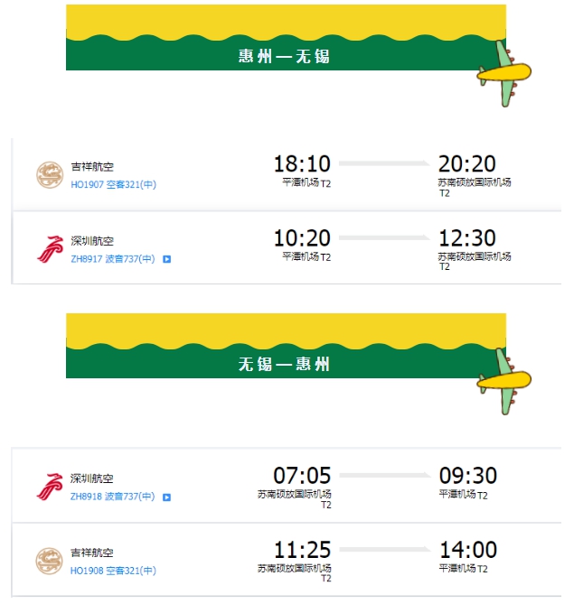 無論您是想體驗北京的現代與傳統,還是去探索無錫的歷史與文化,都能夠方便地從惠州機場出發,直飛到達您的目的地。趕快預訂機票,開啟一段精彩的旅程吧!
