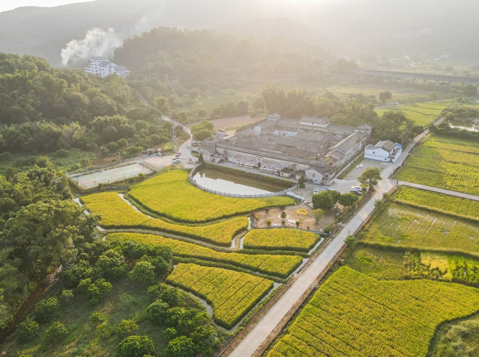 如今,在山清水秀的官山村,每到水稻即將收成的季節里,青黃相接的稻田與村里百年圍屋拱秀樓相映成趣,好一幅鄉村振興的和美畫面。