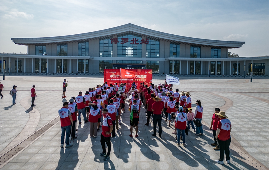 10月5日上午,惠州市撿跑協會、博羅縣麻陂鎮新時代文明實踐所、博羅縣麻陂撿跑志愿服務隊、壹家親撿跑志愿服務隊等多支惠州社會跑團近100名志愿者,從惠州北站乘坐贛深高鐵到博羅北站,在麻陂鎮金湖村開展公益撿跑活動,用行動傳遞奔跑的力量和文明理念。麻陂中學學生鄧純說:“雖然跑步過程有點累,但是既鍛煉了身體,也美化了鄉村,非常有意義。”