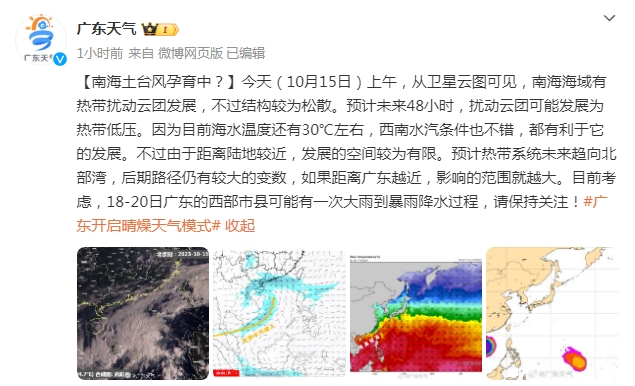 新一股中等強度冷空氣將于10月19日左右影響廣東,下周三開始,氣溫有所下降并有降雨,大家可以趁這幾天晴燥的日子抓緊洗曬。