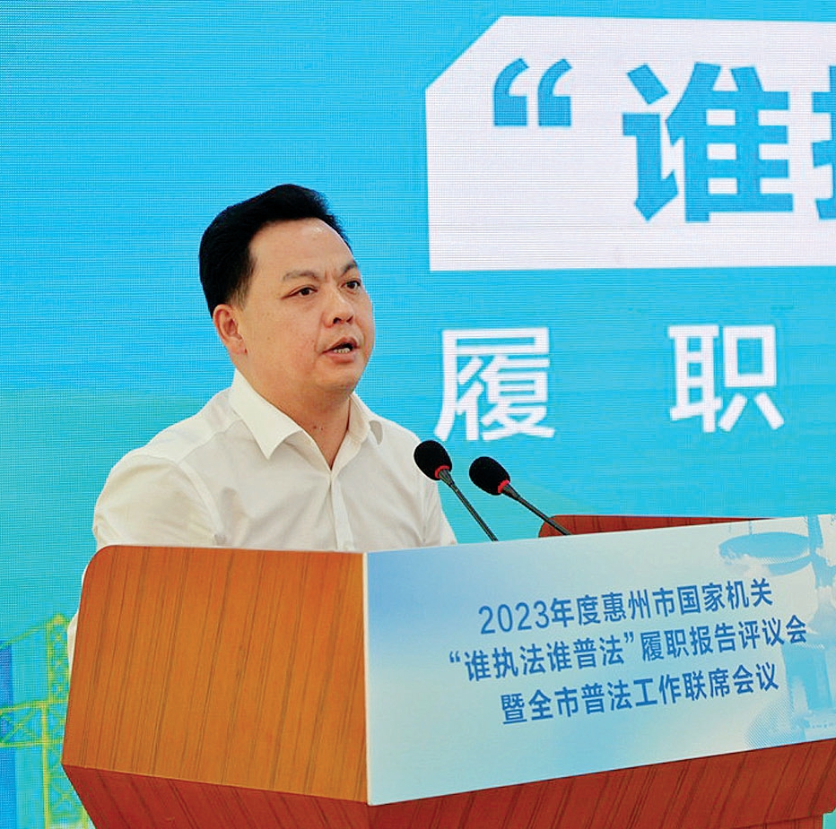 2023年惠州市國家機關“誰執法誰普法”履職報告評議會舉行,5家單位上臺“比武”接受評議