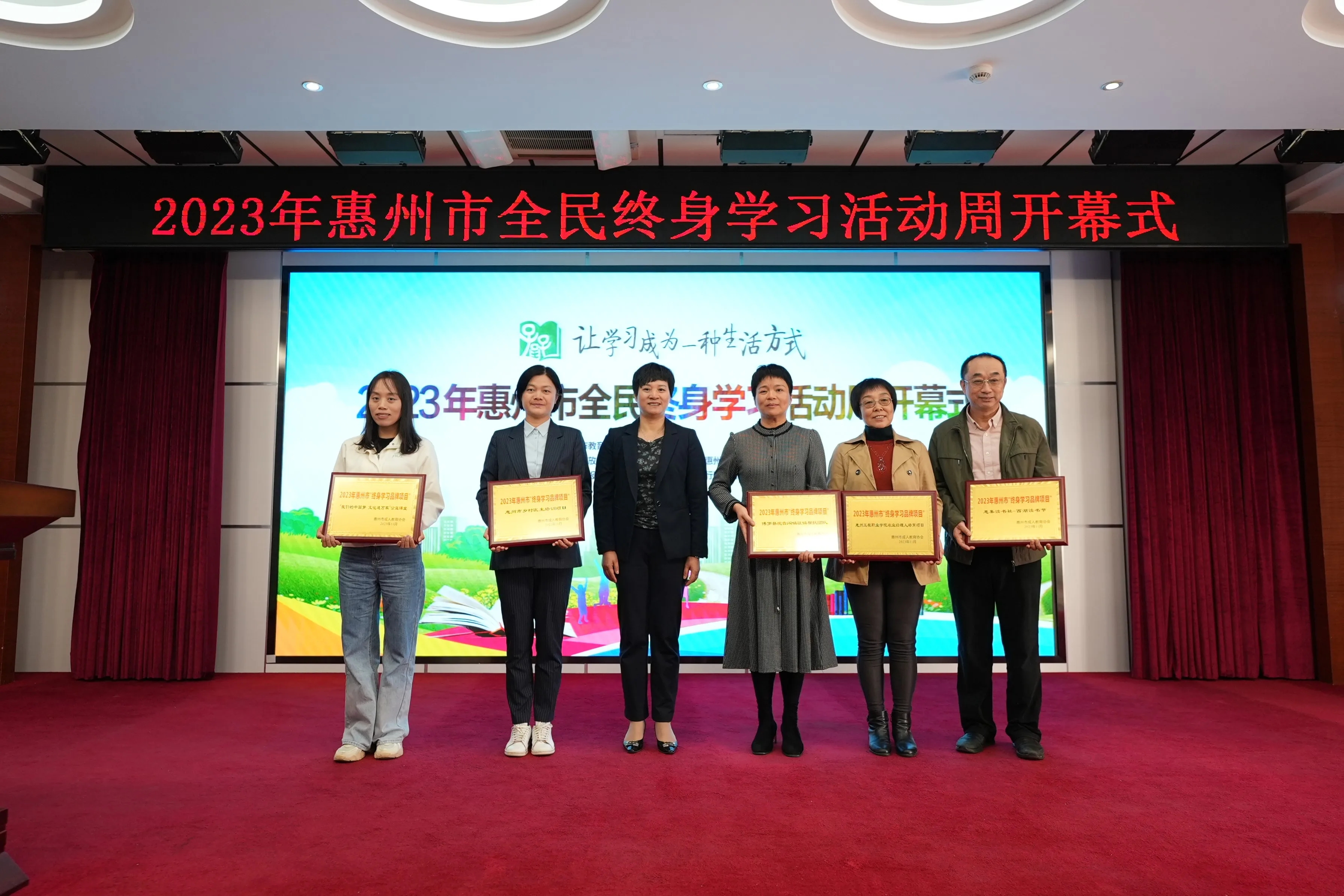 開幕式上表彰了2023年惠州市 “百姓學習之星”和2023年惠州市“終身學習品牌項目”。