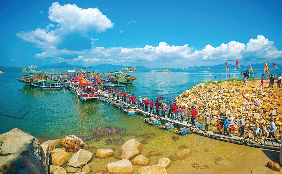 坐船到海島游玩越來越受游客青睞。惠州日報記者楊建業攝