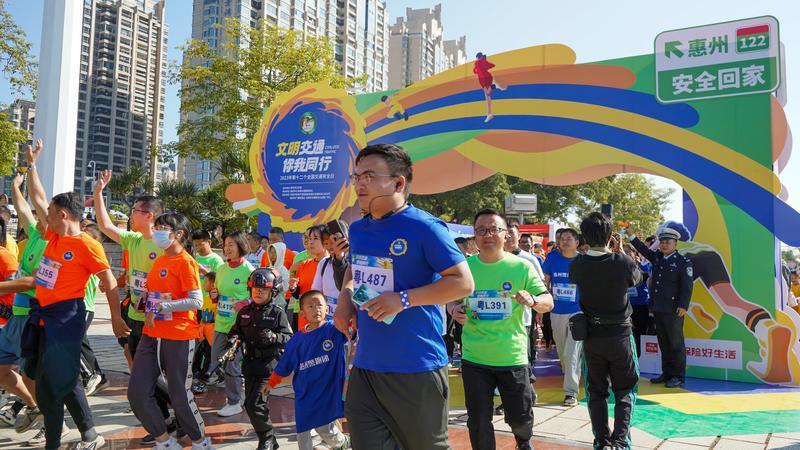 歡樂(lè)跑環(huán)節(jié),市民一邊跑步一邊學(xué)習(xí)交通安全知識(shí)。 惠州日?qǐng)?bào)記者陳濤 攝