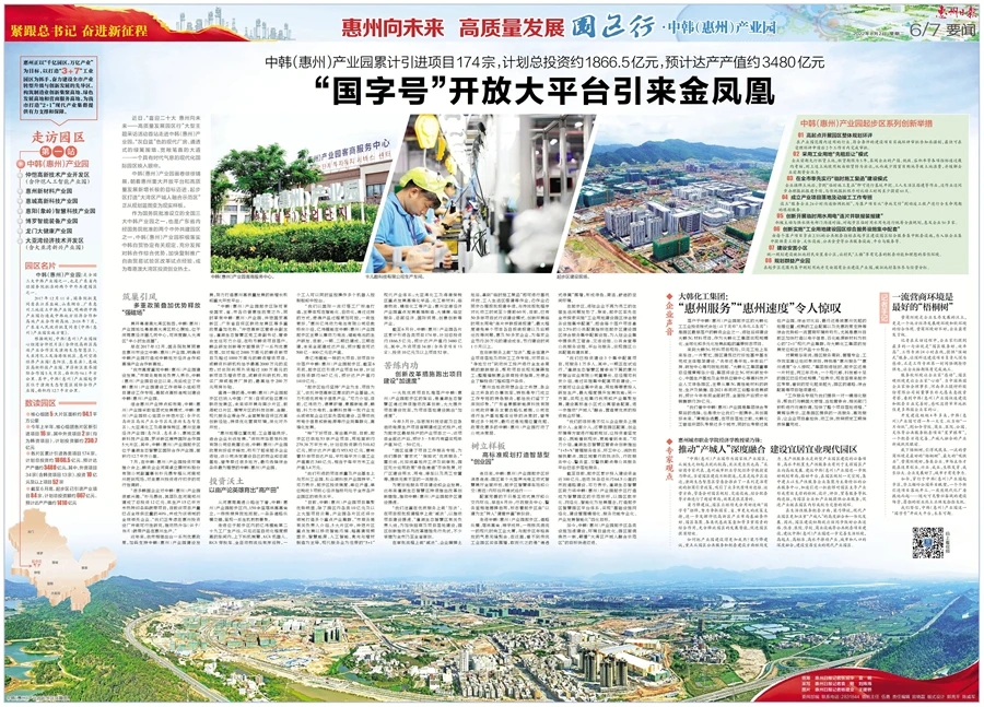 《惠州日報》8月2日專題報道“喜迎二十大 惠州向未來——高質量發展園區行”大型主題采訪活動首站走進中韓(惠州)產業園。