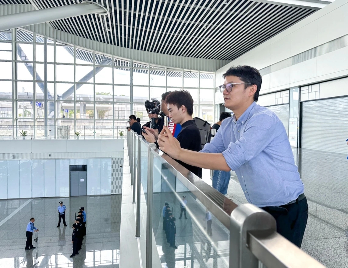 高鐵不只是快,采訪團發現,融合城市文化特色進行設計的高鐵站點成為廣大旅客和市民爭相打卡點;葜荼闭净∶嬖煨驮O計寓意“惠民之舟”,獲得2022-2023年度第二批中國建設工程魯班獎。廣汕高鐵惠州南站外觀設計為疊瓦形式,呈現“重檐疊瓦、鱗紋蕩漾”風格,擁有全國高鐵站中唯一180米的觀景長廊,并有270度的觀景平臺。