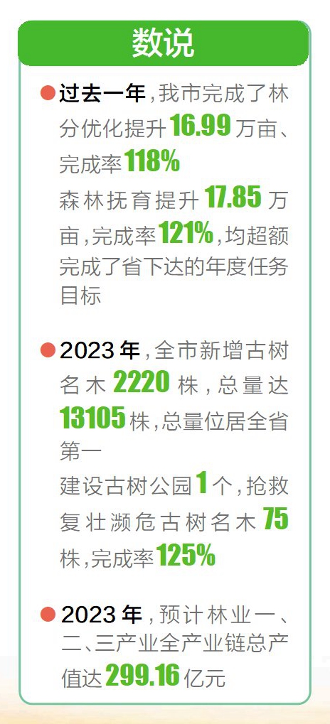 “綠了就是美了”“多種樹、少砍樹”……秉持這些理念,我市完成了林分優化提升16.99萬畝、完成率118%;森林撫育提升17.85萬畝,完成率121%,均超額完成了省下達的年度任務目標。2023年8月以來,我市裸露地復綠、“四旁”“五邊”綠化美化攻堅工作取得積極成效,完成裸露地復綠141個、面積5958畝,“四旁”“五邊”植樹52.85萬株,積極推動“植綠”向最后一公里延伸。