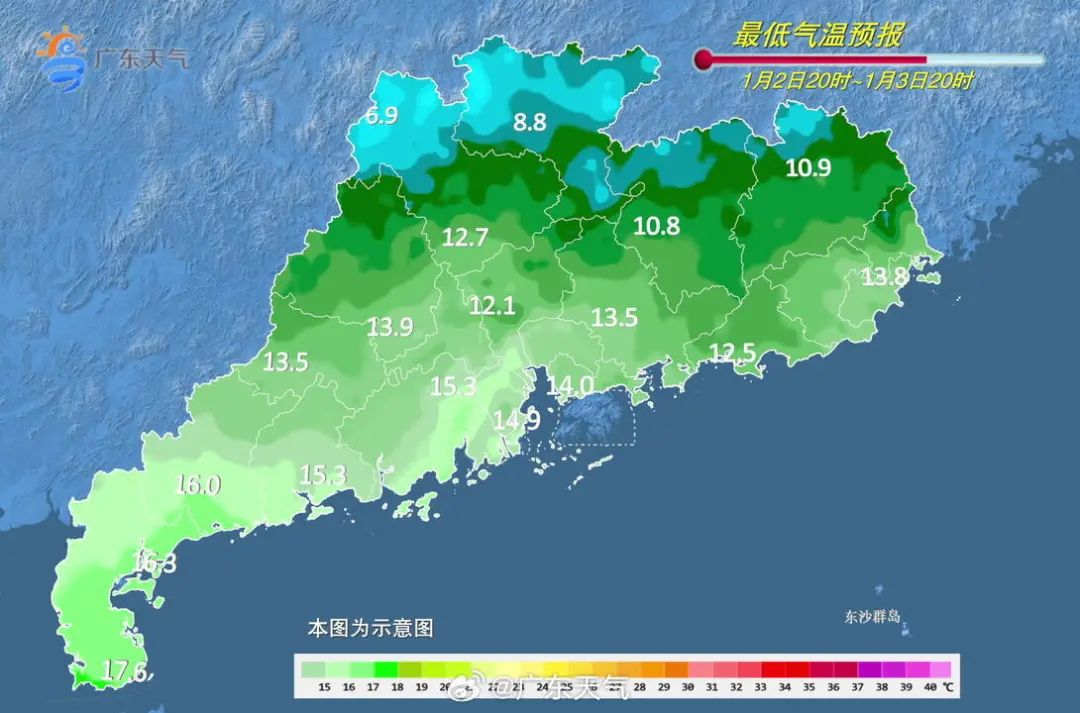 結合上述預測結論,預計與常年相比,2024年1月廣東大部平均氣溫偏高0.1~0.5℃,最低氣溫偏高0.1~0.5℃,月內出現全省性寒潮事件的可能性不大,但預計7-9日、27-31日粵北山區市縣可能出現霜(冰)凍天氣。預計2024年1月平均雨量除西南部正常略少外,其余地區偏多一二成。