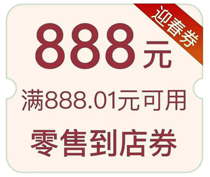 據了解,在第四輪活動中,零售到店消費券、餐飲到店消費券、小程序消費券折扣力度不減,與第三輪相同,券面額統一為滿50元減20元、滿100元減40元、滿200元減80元、滿400元減150元,相當于直接打六折。而更令人驚喜的是,為慶祝新年到來,之前備受消費者喜愛的滿666.01元減666元“暖冬券”,將直接升級為滿888.01元減888元“迎春券”(零售到店券),對市民來說,若能抽中這一大禮,無疑堪比“潑天富貴”。