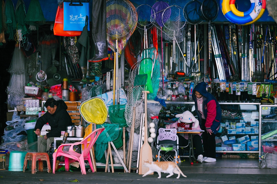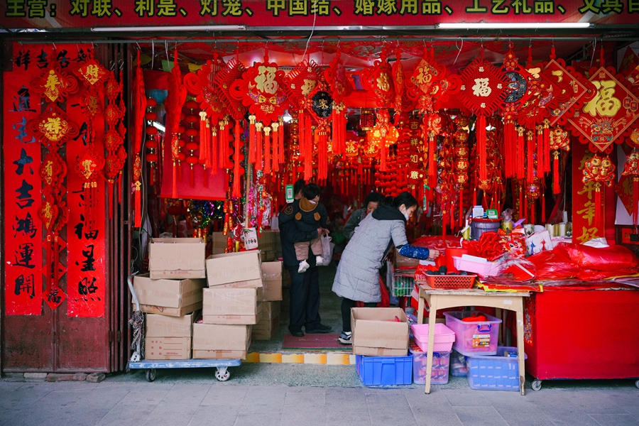 寒冷的天氣也有別樣的煙火氣。年近年關,不少商家推出新年主題的各類商品,給冬日增添了不少熱鬧和喜慶的氣息。在水東老街,各類年貨和傳統小吃最受市民歡迎。一名商販告訴記者,目前還沒到生意最旺的時候,下個禮拜才進入“辦年貨”的高潮,生意會更紅火。
