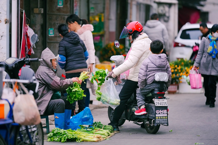 23日上午,記者在橋東市場看到,雖然寒風凌冽,但市場上依然人頭攢動。賣貨的商販帽子、圍巾、羽絨服裝備整齊抵御嚴寒。在橋西的步行街,街頭行人紛紛把自己包成“粽子”,但依舊人來人往,賣貨吆喝、討價還價聲交織在一起。