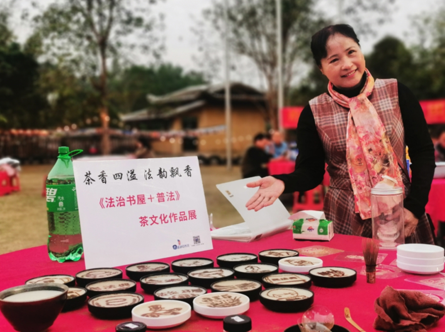 用宋式點茶創作“民法典”“法律援助”“行政復議”等多個主題的茶文化作品,然后由現場工作人員為群眾遞上一杯熱茶,并免費派發《民法典與百姓生活100問》等法律工具書……這是惠州市司法局創建的眾望法治書屋近日舉辦的“法治書屋+茶香書香”主題普法活動,讓法治氣息洋溢在茶香、書香里。