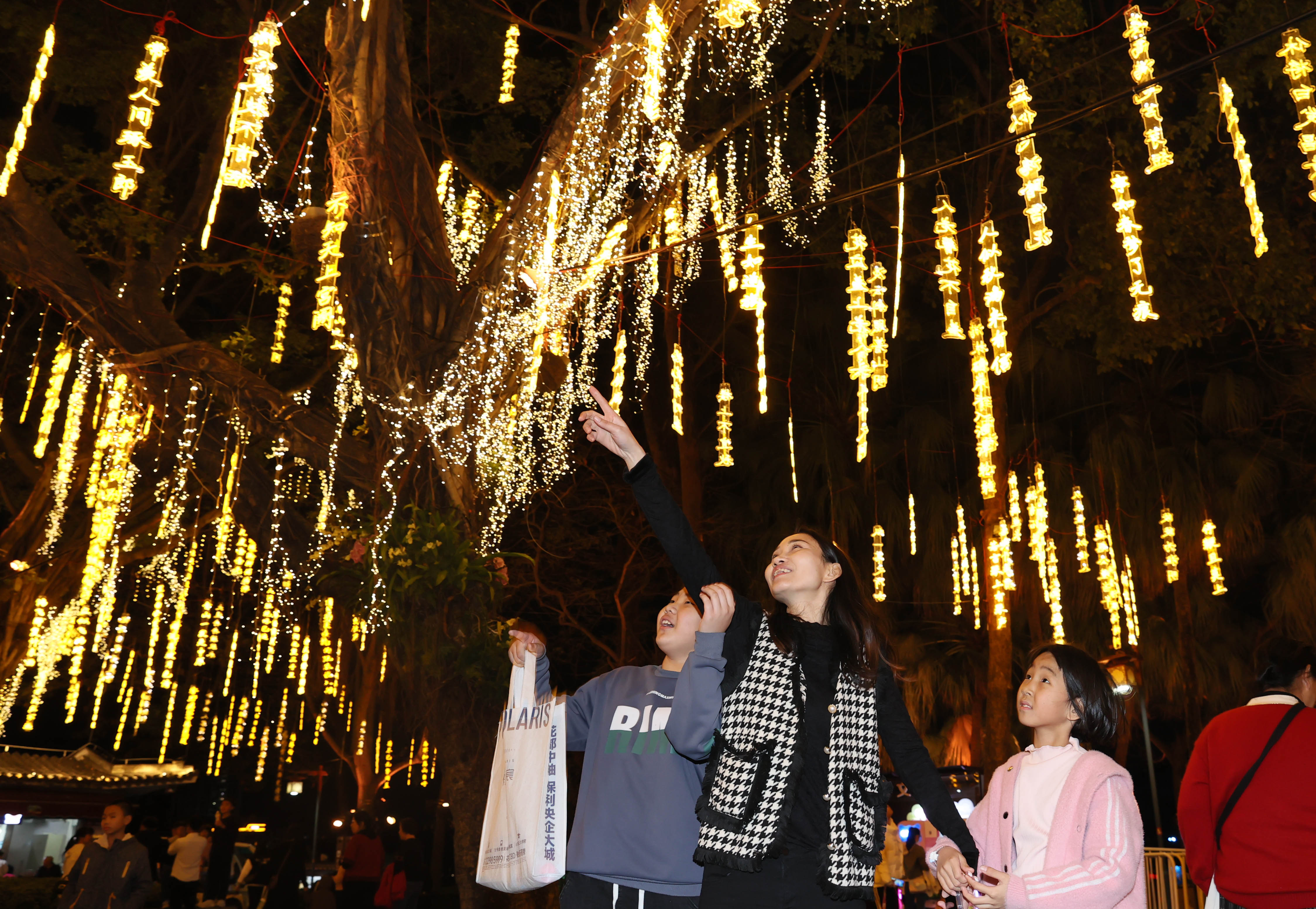 “亮了,亮了!”“哇,好美!”2月7日晚6時許,隨著造型各異的盞盞花燈齊刷刷點亮,朦朧夜色中的惠州西湖頓時變成五彩斑斕的童話世界,等候多時的觀眾一片歡呼。當晚,“羅浮山下四時春”——惠州西湖2024年新春燈會正式亮燈,官方公布的公眾號、小程序預約爆滿。據(jù)不完全統(tǒng)計,亮燈首晚約4萬人次到場欣賞西湖花燈勝景。