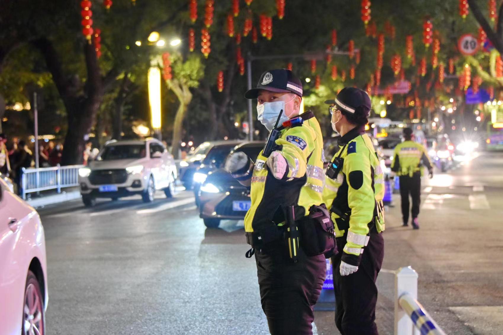 針對市區水東街迎春花街、西湖新春燈會人多、車多和道路交通情況,惠州交警通過定點、定人、定線、定面,制訂應急預案,全力做好疏堵保暢工作。同時,扎實樹牢“一盤棋”思想,惠州全市各交警部門最大限度將警力和裝備投放路面,市公安局交警支隊先后分三批抽調83名警力和16臺警用車輛支援春運安保一線,全力保障人民群眾安全順暢出行。在西湖花燈活動期間,江南大隊采取緊盯關鍵時間節點的策略,統籌安排日間和夜間警力,動態調整勤務部署,以加大重點路段管控力度,努力確保轄區景區等道路暢通、有序。