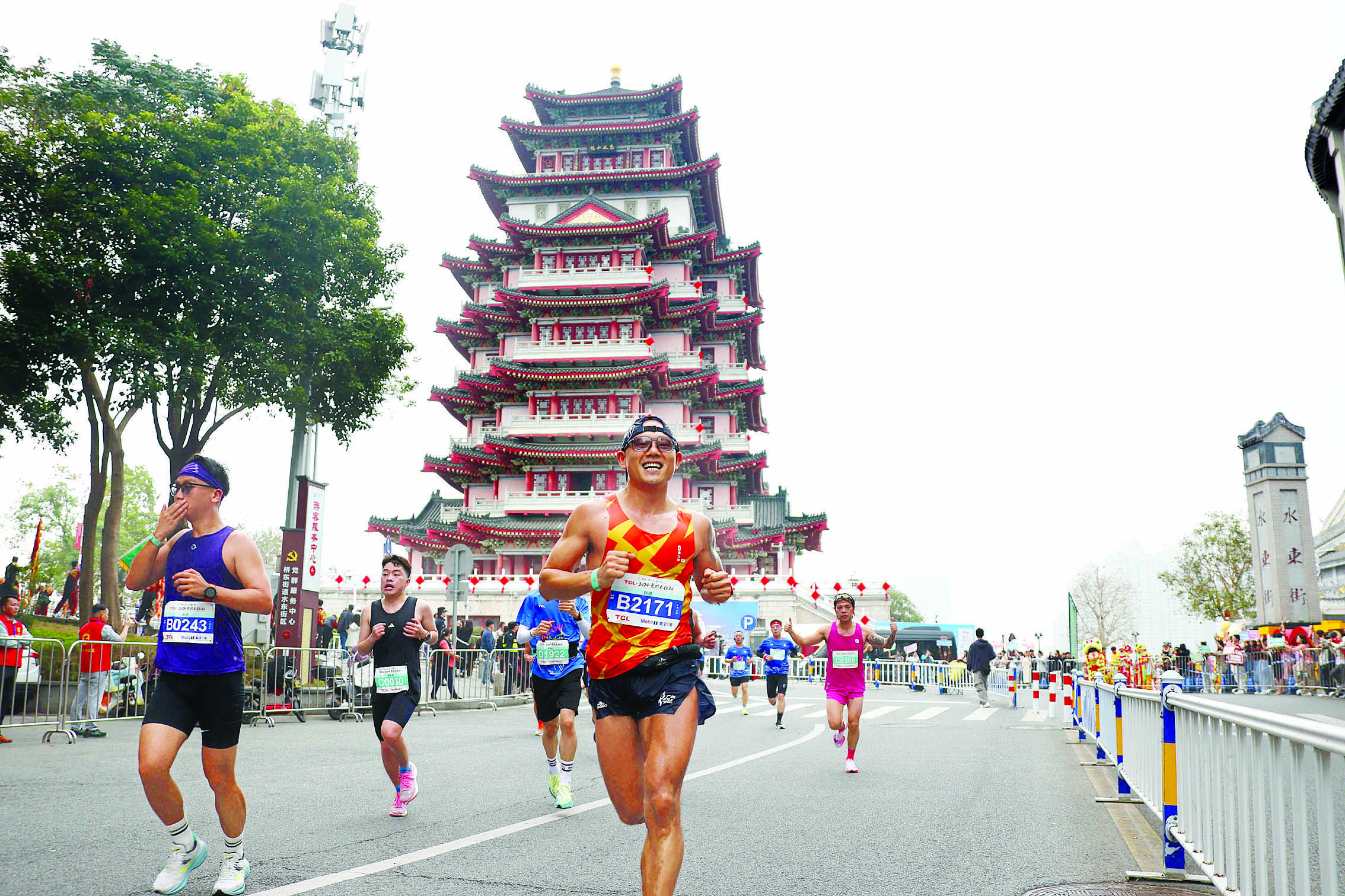 “最美橋西三月天 惠馬開跑勇爭先”“府城之下 燃燒汗水”“跑進橋西 穿越府城”……在文筆塔,橋西街道辦工作人員穿著美麗的漢服,舉著自創的標語牌,站在文筆塔下,為選手們加油鼓勁。“惠州人民真熱情!”跑友陸炳昌感嘆道。