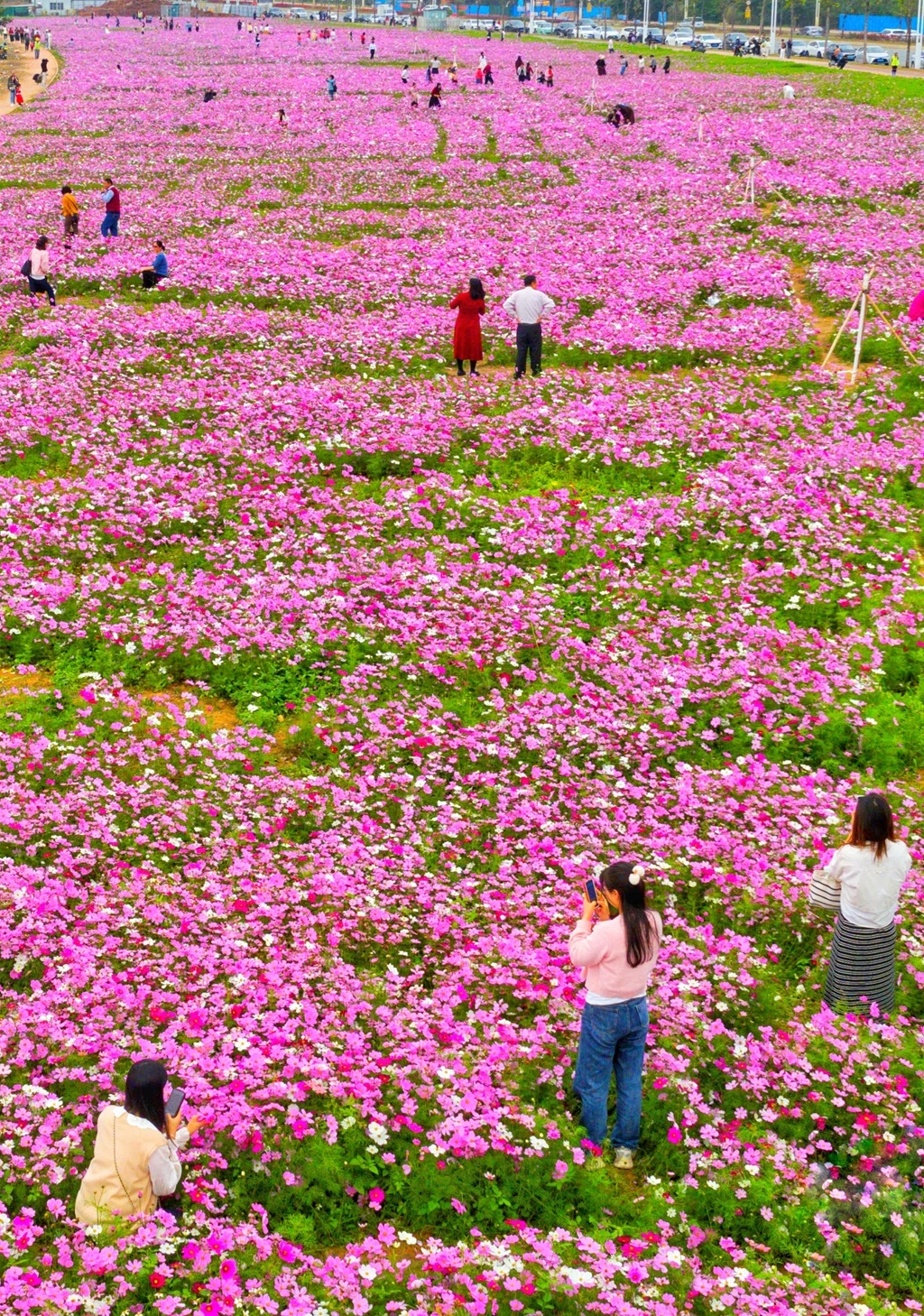 惠城區(qū)小金河大道路邊上有30畝格桑花盛開,吸引了許多游客觀賞打卡。