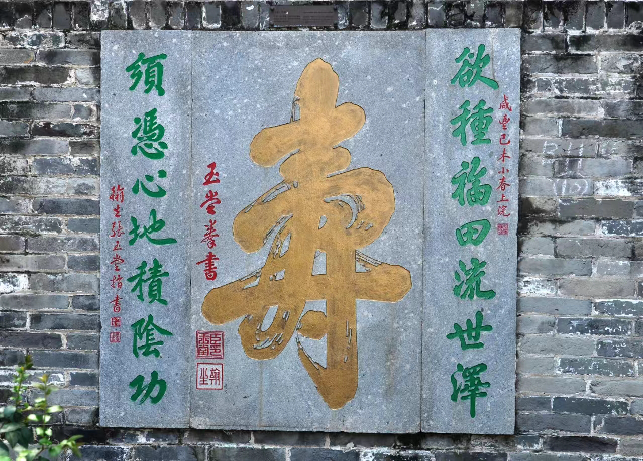 在香港九龍城侯王廟露天壁間,有張玉堂的拳書“壽”字。本版圖片 嚴藝超 翻拍