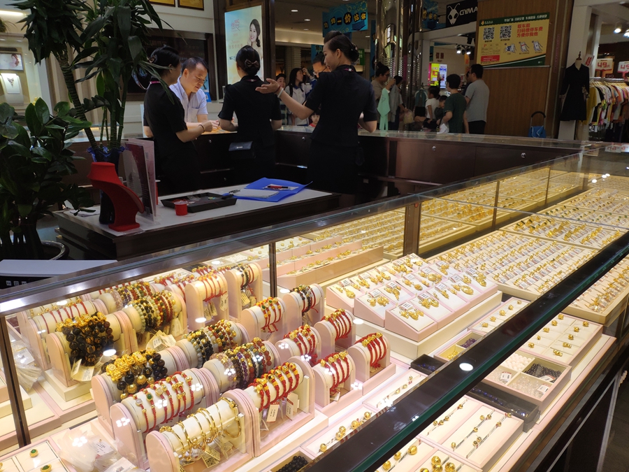 一家品牌金飾門店銷售介紹,黃金飾品的銷售方式主要分為兩種,一種直接按克重計算,一種則是“一口價”。其中,“一口價”是商家根據黃金飾品的款式、工藝等因素設定一個固定價格,不考慮黃金的實際重量,包含了金價、工費等全部費用,相對成本較高。如果消費者更注重黃金的保值性和成本考慮,建議購買克重黃金首飾。如果更注重款式設計和外觀吸引力,“一口價”黃金飾品則更具吸引力。