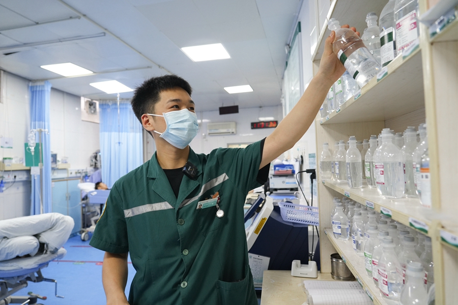 急診科是醫院人流量大、搶救和管理工作繁重的“最前鋒”科室,這里每一天都是“戰場”,這里的醫護與時間賽跑、與死神較量,24小時為生命站崗。王海波表示,作為急診科護士,他需要以最快的速度精準分診,保障病人及時獲得有效治療。