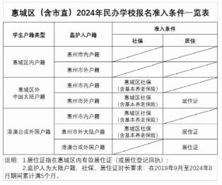 1.監(jiān)護人一方為港澳臺戶籍或外國戶籍,持有效的惠城區(qū)居住證。