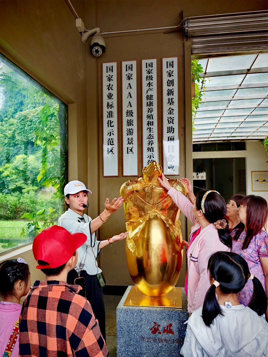 萬(wàn)龜園工作人員向團(tuán)友耐心講解。 劉曼云 攝