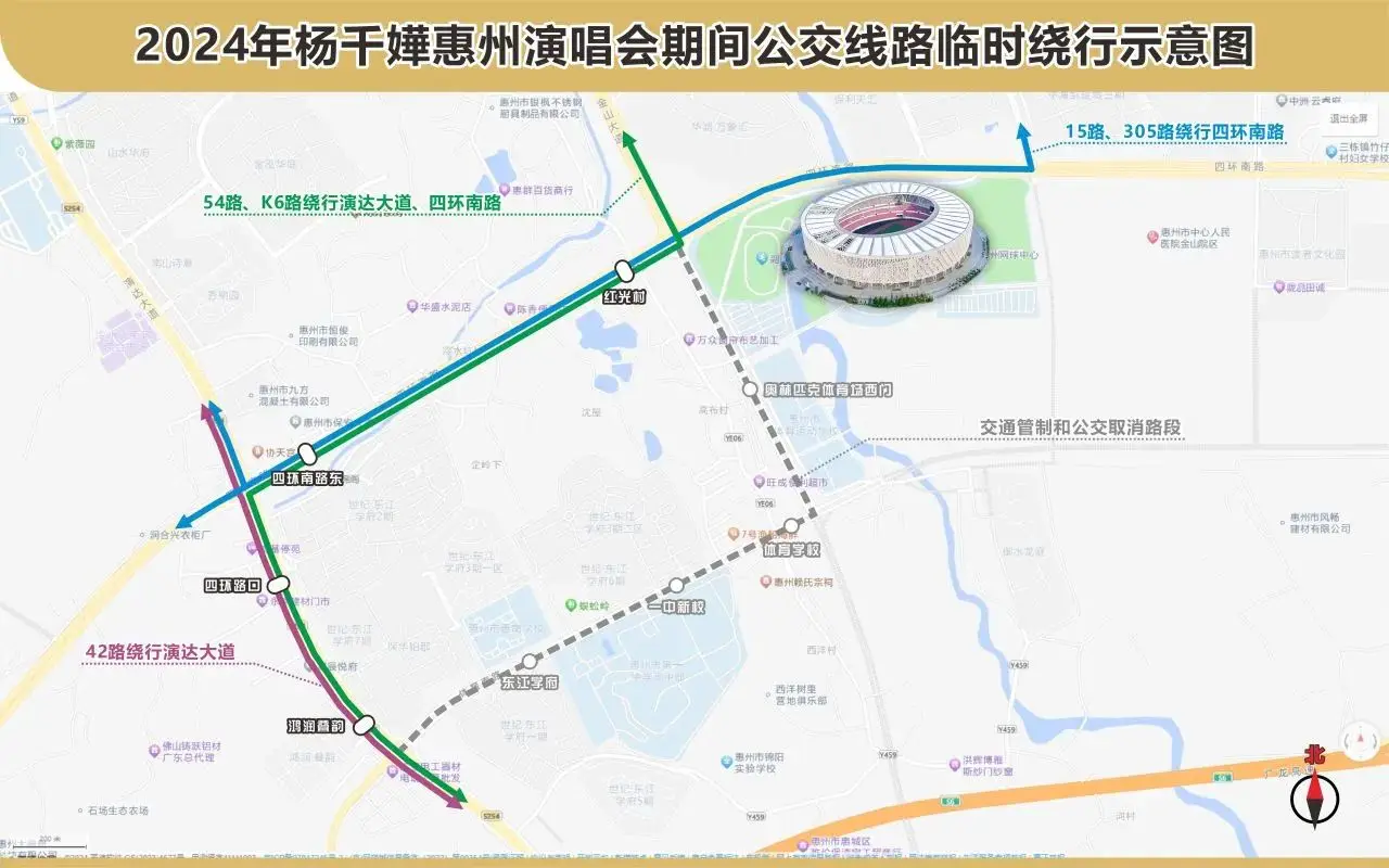 6月1日,楊千嬅惠州演唱會舉行,我市交警部門將對惠州奧林匹克體育場及周邊部分道路實施交通管制,不設停車位、不允許臨時停靠上下客。記者從惠州市公共交通管理有限公司獲悉,當天,我市部分常規公交線路將采取臨時繞行措施,同時開通接駁專線。
