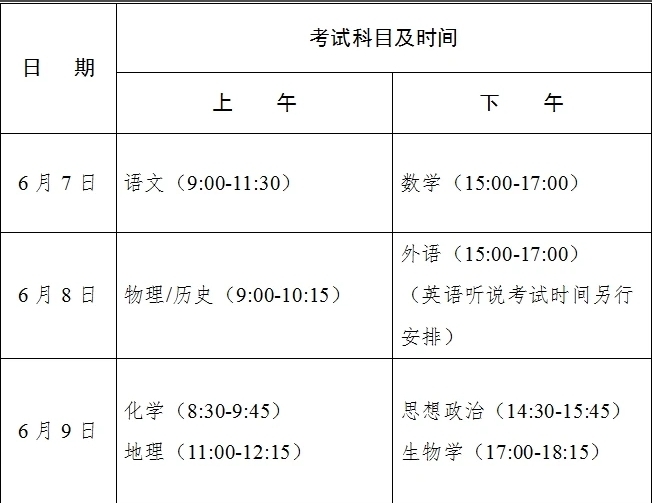 2024年普通高考考試科目和時間安排