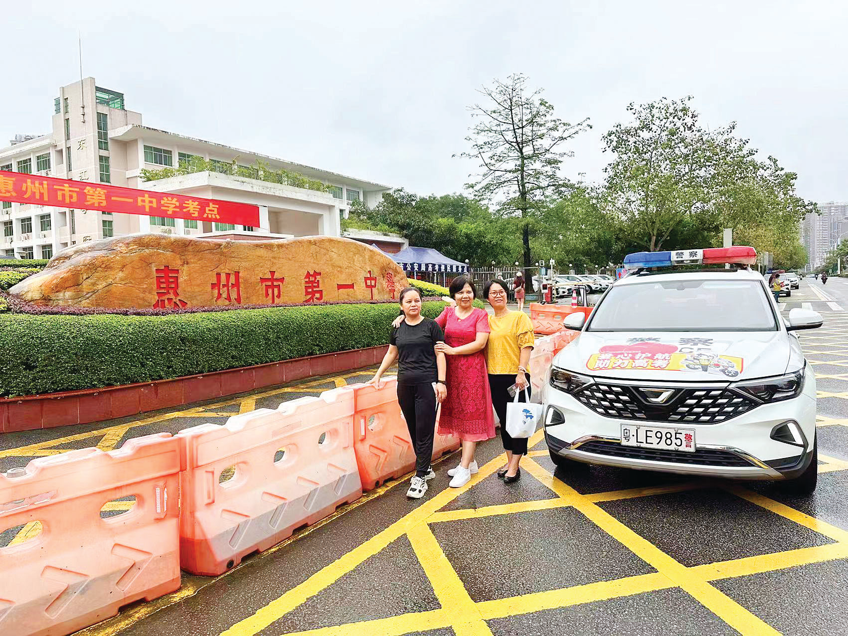 高考期間,8個志愿服務團隊分赴市區11個考點,每天投入近300人次開展志愿服務,暖心護航高考。市馬相華交通公益志愿服務隊、市狼幫公益救援隊、市手拉手愛心志愿服務隊、惠州愛爾眼科醫院紅十字會、市種德慈善會志愿服務隊、市東江職校志愿服務隊、市紅十字賑濟救援隊、市新里程駕校志愿服務隊8家公益組織的志愿者風雨無阻,一早來到各個考點協助教育、交警部門,圍繞惠城區高考考點、考生及家長,重點開展考點周邊交通秩序維護、突發事件應急處置和心理疏導等志愿服務。