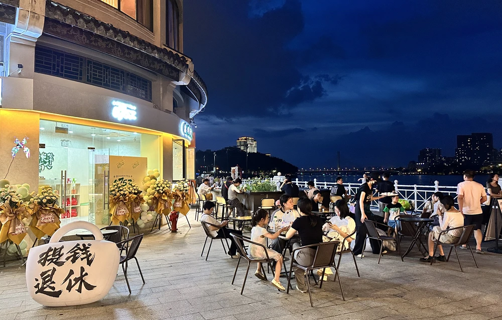 來到0752水東街店,首先映入眼簾的就是開闊的東江江面,以及寬敞的店前廣場。“這個江面太壯觀了,景觀層次也很豐富,喝著0752的茶,再看著對岸的高樓大廈,以及舒適的江邊綠道,還真有點上海外灘或漢口江灘的感覺。”對于0752水東街店的選址,市民鵬程連連點贊。