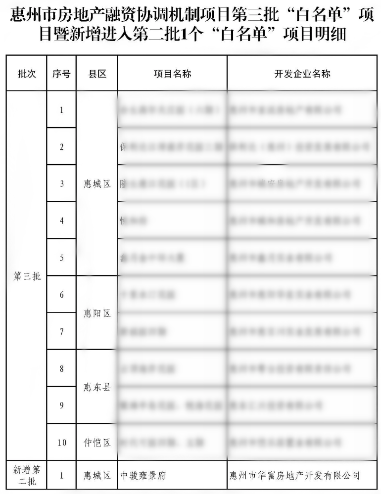 6月14日,惠州市房地產融資協調機制工作專班印發《惠州市房地產融資協調機制工作專班推送房地產融資協調機制項目名單的通知》,發布第三批房地產融資協調機制“白名單”的同時,亦公布第二批“白名單”新增中駿·雍景府1個項目。